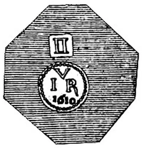 | Obverse description | Denomination in roman numerals plus round stamp with three-lettered inscription + date. |