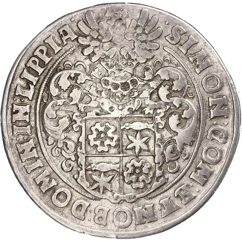 Technical/Grading: For a 2 Thalers of this period, key areas for strike quality and wear assessment include the highest points of Simon VII's portrait, particularly the hair, nose, and armor details. On the reverse, the crown above the shield and intricate elements within the Lippe arms are critical. Early 17th-century minting techniques, often manual screw presses, could result in uneven strikes, leading to softness in high-relief areas even on well-preserved examples. Planchet quality varies, sometimes showing minor laminations or adjustment marks. A sharp strike with full detail on both sides is highly desirable.