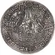 The Three Magi, Caspar, Melchior, and Baltasar, standing facing, heaching holding lis-tipped scepter, around coat-of-arms |
