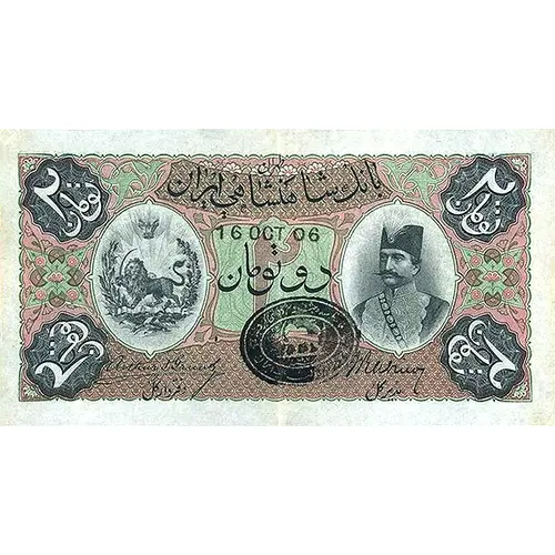 PAYABLE AT THERAN ONLY THE IMPERIAL BANK OF PERSIA TWO TOMANS |