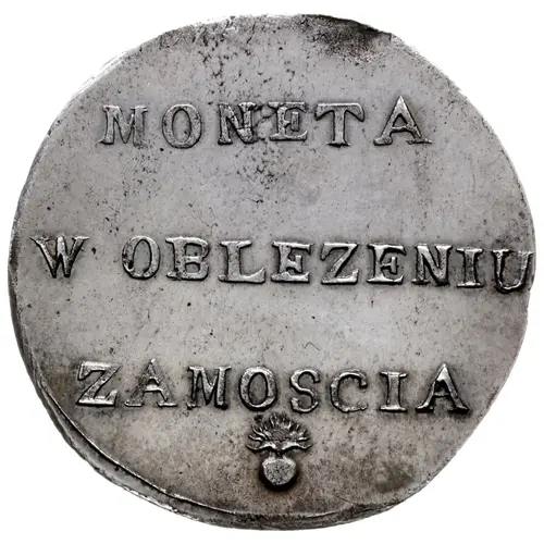 MONETA W OBLEZENIU ZAMOSCIA (Translation: Coin In [the] siege [of] Zamość) |