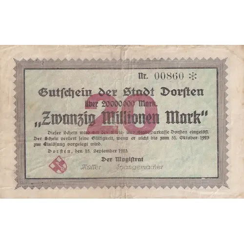 | Issuer | City of Dorsten (Prussian province of Westphalia) |