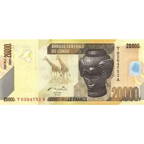 BANQUE CENTRALE DU CONGO VINGT MILLE FRANCS (Translation: CENTRAL BANK OF CONGO TWENTY THOUSAND FRANCS) |