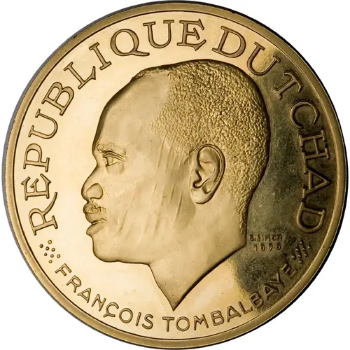 Obverse lettering REPUBLIQUE DU TCHAD G. SIMON 1970 FRANÇOIS TOMBALBAYE