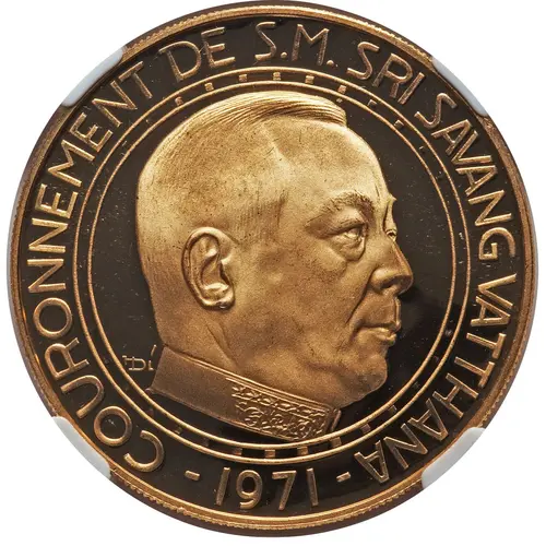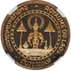 | Reverse description | Radiant sun above statue dividing elephant heads with lamps flanking, all within circle |
