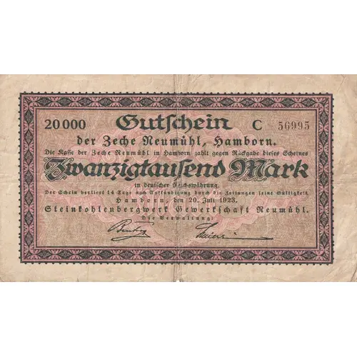 20 000 Mark Steinkohlenbergwerk Gewerkschaft Neumühl