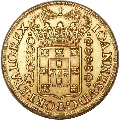 | Obverse lettering | IOANNES · V · D · G · PORT · ET · ALG · REX 20000 (Translation: John V, by the grace of God, King of Portugal and the Algarves.) |