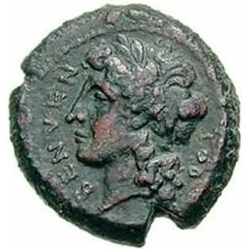 توضیحات روی سکه Apollo wearing laureate facing left with legend in front.
