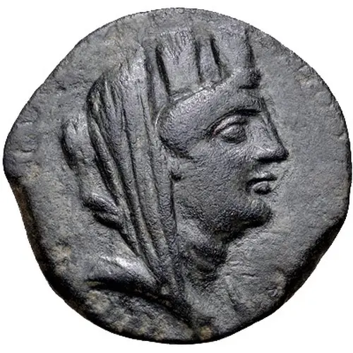 | Descripción del anverso | Turreted and veiled head of Tyche right |