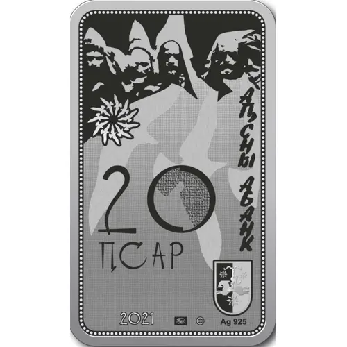 | Obverse lettering | АҦСНЫ АБАНК 20 ҦСАР 2021 ММД Ag 925 (Translation: The Bank of Abkhazia 20 Apsars 2019 MMD Ag 925) |