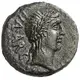 Popis líce Laureate head of Apollo right.