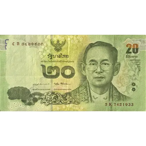 | Obverse lettering | 20 ยี่สิบบาท รัฐบาลไทย ๒๐ (Translation: 20 Twenty Baht Thai government 20) |
