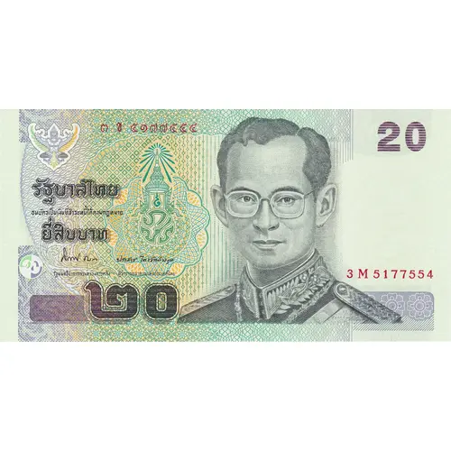 Prominent color light green, King Rama IX in the Uniform of the Supreme Commander, centered to right facing front. Kings monogram to left of portrait. |