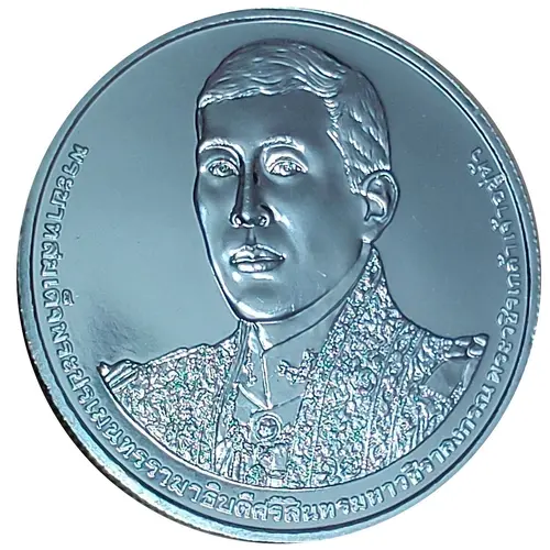| Reverse description | Emblem of Royal ceremony of 72nd birthday of Rama X: crowned `วปร` monogram on octagonal diamond surrounded by 72 small diamonds, under the Great Crown of Victory superimposed on the Royal Nine-Tiered Umbrella, flanked by seven-tiered Chatra parasols held by Rajasiha facing right on the left and Gajasiha facing left on the right, two Nagas flanking Thai numerals `๗๒`, the creatures binded with ribbon with inscriptions `พระราชพิธีมหามงคลเฉลิมพระชนมพรรษา ๖ รอบ ๒๘ กรกฎาคม ๒๕๖๗` inside, decorated by Schoutenia glomerata flowers. Inscriptions surrounded. |