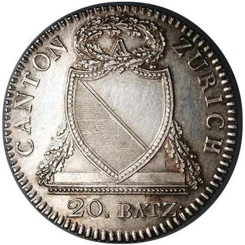 | Obverse lettering | CANTON ZÜRICH 20. BATZ: |