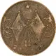 | Opis rewersu | Crossed flags with flowers on either side, all with star above English legend below. |