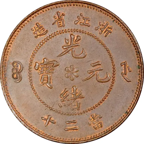 | Obverse lettering | 造省江浙 ᠪᠣᠣ ᠵᡝ 光 寶元 绪 十二當 (Translation: Made in Chekiang Province Boo-je (Chekiang Mint) Guangxu (Emperor) / Yuanbao (Original currency) 20 Cash) |