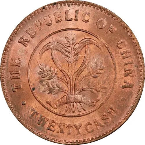 | Obverse lettering | THE REPUBLIC OF CHINA TWENTY CASH |