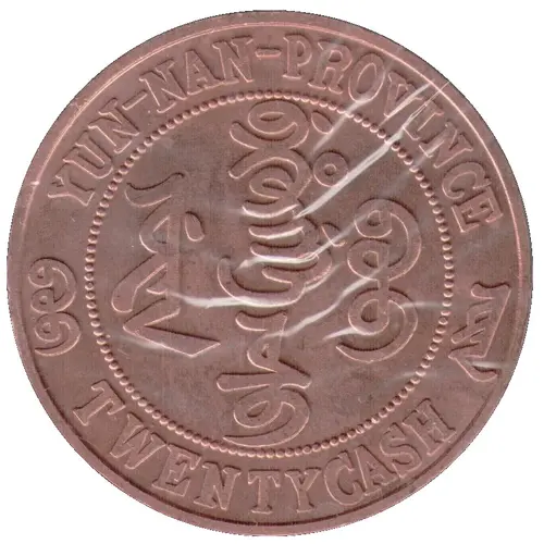 | Obverse lettering | YUN-NAN PROVINCE TWENTY CASH |