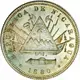 Artistry: The design of the 1880 20 Centavos reflects the prevalent neoclassical and republican stylistic schools common in late 19th-century Latin American coinage, often executed by European or American mints. While the specific engraver remains anonymous, the artistry emphasizes national symbolism. The obverse prominently features the Coat of Arms of Nicaragua, depicting five volcanoes rising from the sea, a radiant sun, a rainbow, and a Phrygian cap, encircled by the legend "REPUBLICA DE NICARAGUA" and the date. The reverse displays the denomination "20 CENTAVOS" within an elegant wreath, accompanied by the purity and weight specifications "GR. 5 LEY 0.800".
