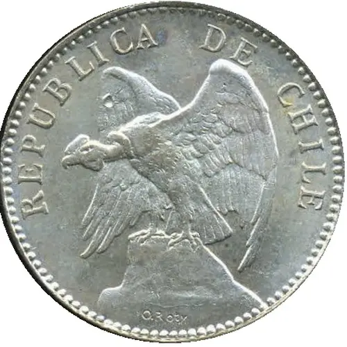 | نوشتههای روی سکه | REPUBLICA DE CHILE O. Roty (Translation: Republic of Chile.) |