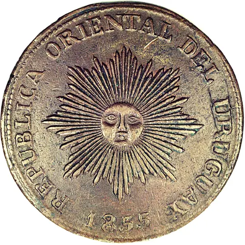 Historical Context: The 20 Centésimos de Real, issued in 1854-1855, represents a critical phase in the monetary history of Uruguay. Following the tumultuous "Guerra Grande" (1839-1851), the young republic embarked on a path of national consolidation and economic stabilization. This coinage, alongside other denominations, marked a significant departure from the chaotic mix of foreign and provisional currencies that had previously circulated. The introduction of the Centésimo decimal system, replacing the older Real, was a bold move to modernize the nation's financial framework and assert its sovereign authority through a unified national currency, reflecting a post-conflict commitment to order and progress.