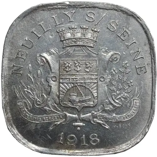 | Obverse description | Coat of arms of the town of Neuilly sur Seine above the date and below the name of the town. |