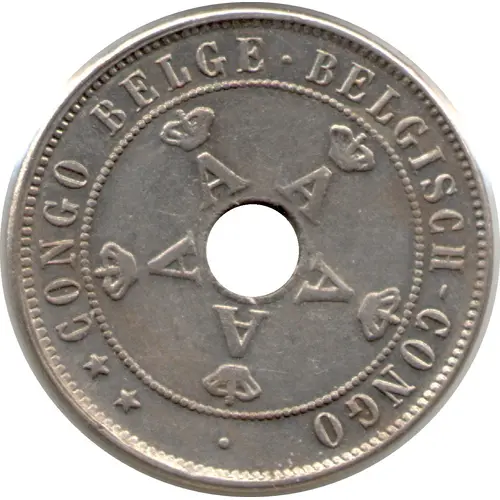 | Obverse lettering | **CONGO BELGE · BELGISCH-CONGO · A A A A A |