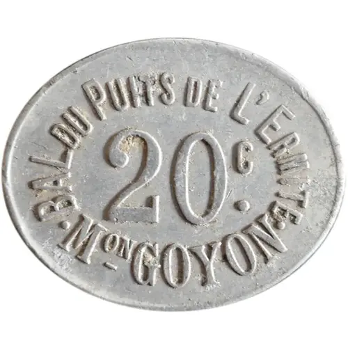 | Obverse lettering | BAL DU PUITS DE L`ERMITE 20 c Mon GOYON |