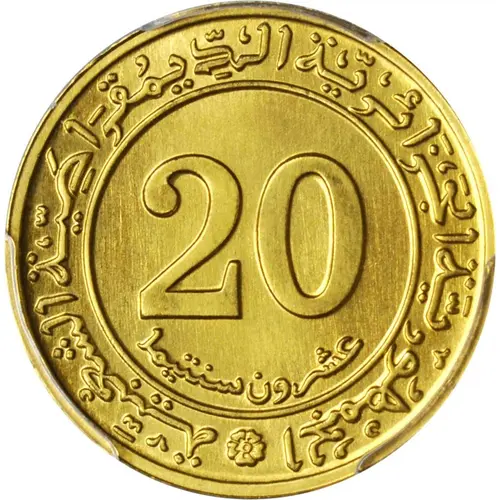 | Obverse lettering | الجمهورية الجزائرية الديمقراطية الشعبية 20 عشرون سنتيما (Translation: Algerian People`s Democratic Republic 20 Twenty centimes) |