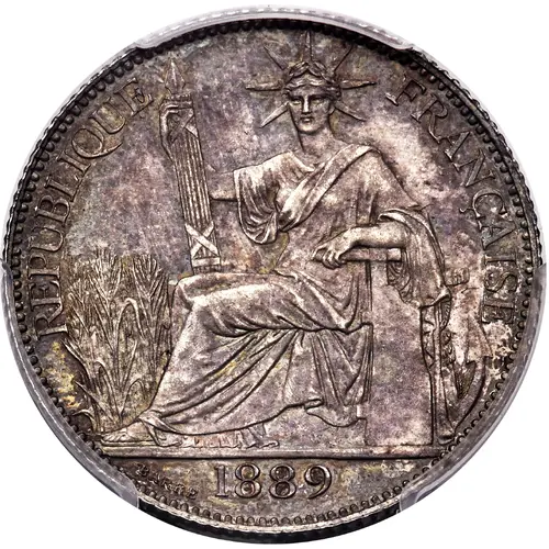 Artistry: The coin's design exemplifies the neoclassical style prevalent in French governmental coinage of the late 19th century. While a specific engraver for this colonial issue is not universally attributed, the style is characteristic of the Paris Mint, likely influenced by masters like Henri-Auguste-Jules Patey. The obverse features a finely rendered laureate bust of Marianne, personifying France, encircled by "REPUBLIQUE FRANCAISE." The reverse displays "20 CENTS" within an ornate wreath, framed by "INDO-CHINE FRANCAISE" and the date.