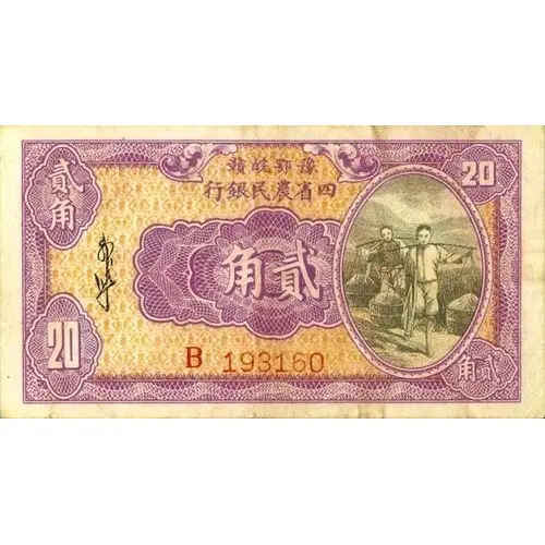 | Obverse lettering | 贛皖鄂豫 行銀民農省四 (Translation: Jiangxi, Anhui, Hubei and Henan Bank Minnong Province) |