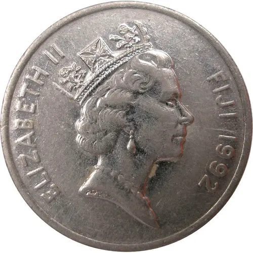 | Obverse lettering | ELIZABETH II FIJI 1992 RDM |