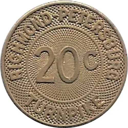 | Obverse lettering | RICHMOND - PETERSBURG 20c TURNPIKE |