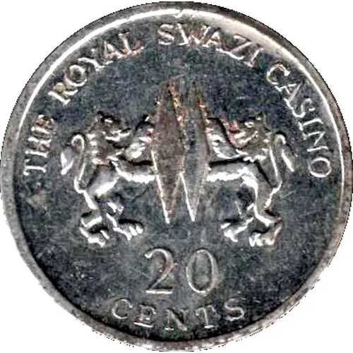 | Obverse lettering | The Royal Swazi Casino 20 Cents |
