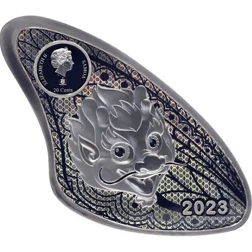 | Obverse description | Head of a dragon facing right on a hologram background, picture of a coin above with the head of Queen Elizabeth II facing right and small Samoan coat of arms below. |