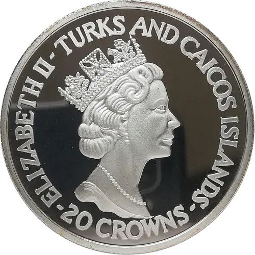 | Obverse lettering | ELIZABETH II-TURKS & CAICOS ISLANDS 20 CROWNS |
