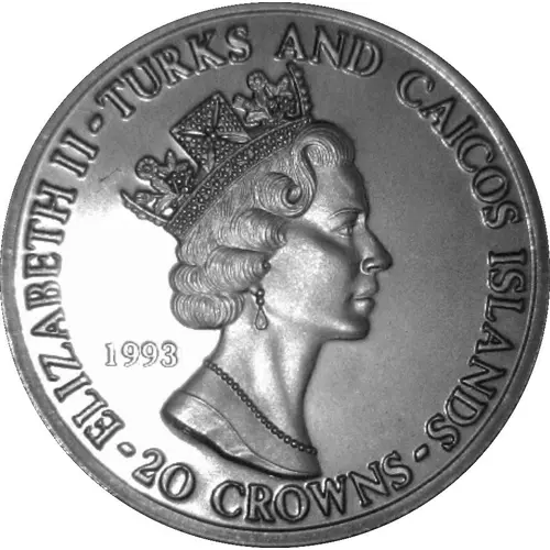 | Obverse lettering | -ELIZABETH II-TURKS AND CAICOS ISLANDS- 1993 LB 20 CROWNS |