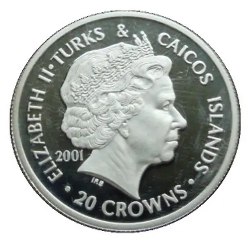 | Obverse lettering | ELIZABETH II·TURKS & CAICOS ISLANDS IRB · 20 CROWNS · |
