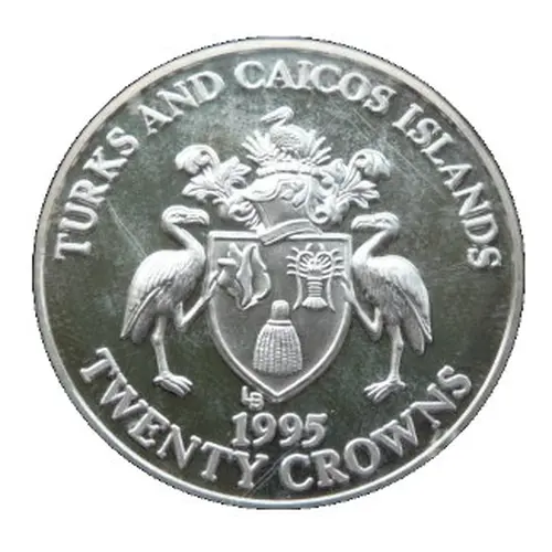 | Obverse lettering | TURKS AND CAICOS ISLANDS 1995 TWENTY CROWNS |
