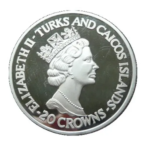 | Obverse lettering | ELIZABETH II-TURKS AND CAICOS ISLANDS 20 CROWNS |