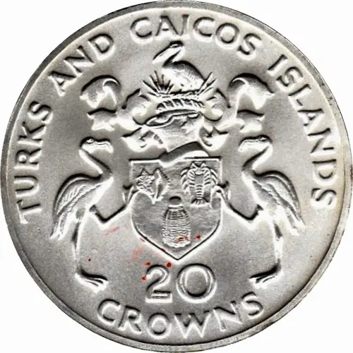 | Obverse lettering | TURKS AND CAICOS ISLANDS 20 CROWNS |