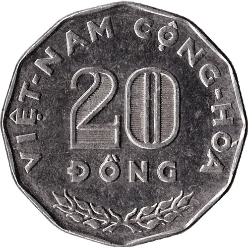 VIỆT-NAM CỘNG HÒA 20 ĐỒNG (Translation: Republic of Vietnam) |
