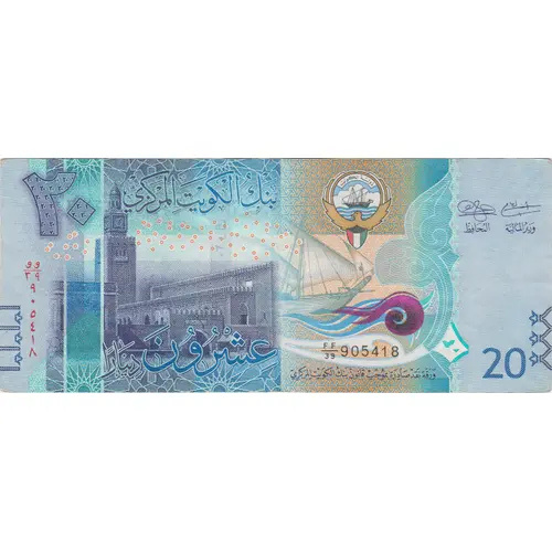 | نوشتههای پشت اسکناس | CENTRAL BANK OF KUWAIT 20 ٢٠ TWENTY Dinars |