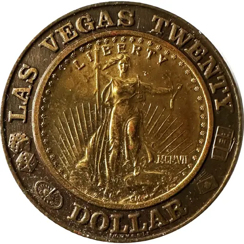 | Obverse lettering | LAS VEGAS TWENTY LIBERTY MCMVII CM DOLLAR SOUVENIR |
