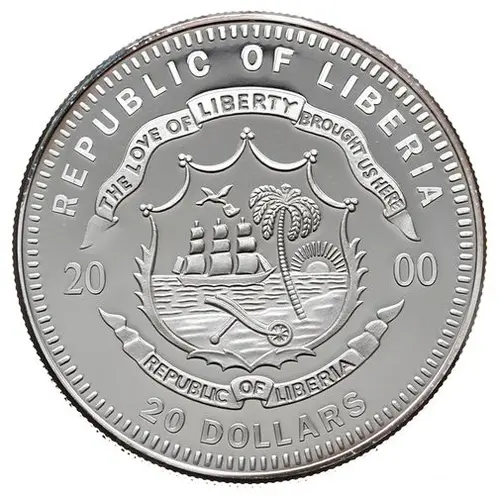 | Obverse lettering | REPUBLIC OF LIBERIA THE LOVE OF LIBERTY BROUGHT US HERE 20 00 REPUBLIC OF LIBERIA 20 DOLLARS |