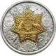 Coat of Arms of Australia at the seven-pointed star shaped centre set on a bed of golden wattle. |