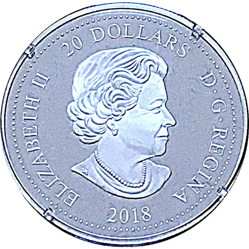 | Obverse lettering | ELIZABETH II 20 DOLLARS D·G·REGINA 2018 (Translation: Elizabeth II Queen by the grace of God) |