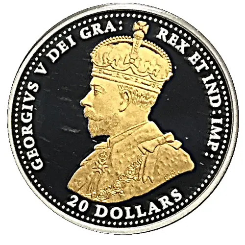 GEORGIVS V DEI GRA: REX ET IND: IMP B.M. 20 DOLLARS (Translation: George V, King and Emperor of India by the Grace of God) |