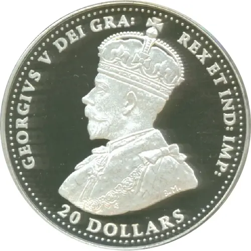 GEORGIVS V DEI GRA : REX ET IND : IMP : B.M. 20 DOLLARS (Translation: George V, King and Emperor of India by the Grace of God) |